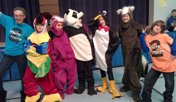 Samantha Skunk presentations bring student leaders/presenters to children as a lovable magenta skunk and as other characters in the story. The story is generally presented by students in full costume.